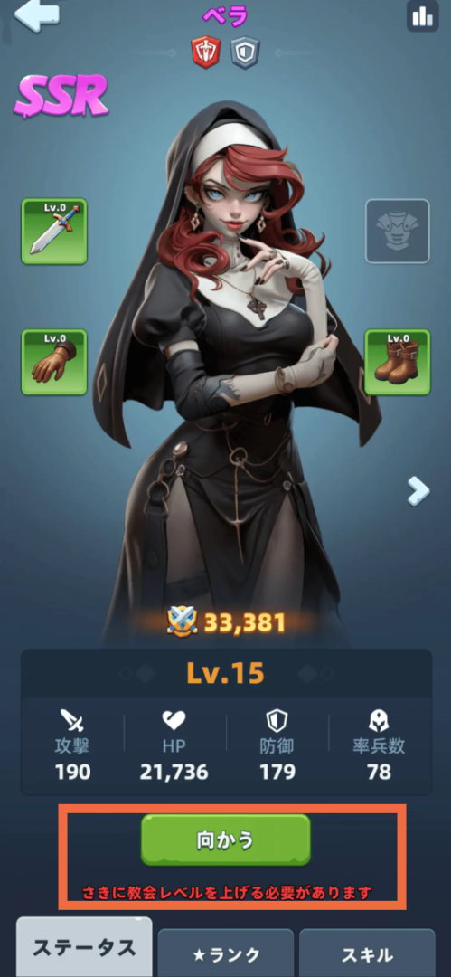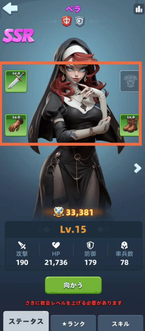 英雄のランクを上げることで強化できます。ランクを上げるには、英雄の欠片が必要になります。