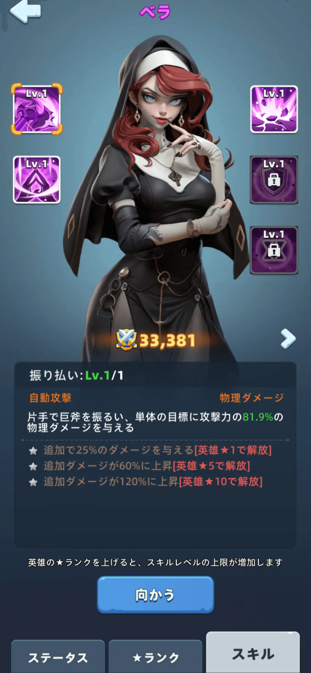 スキルを強化することで英雄を強化できます。スキルはレベルを上げてスキルを開放、ランクアップで強化することが可能です。