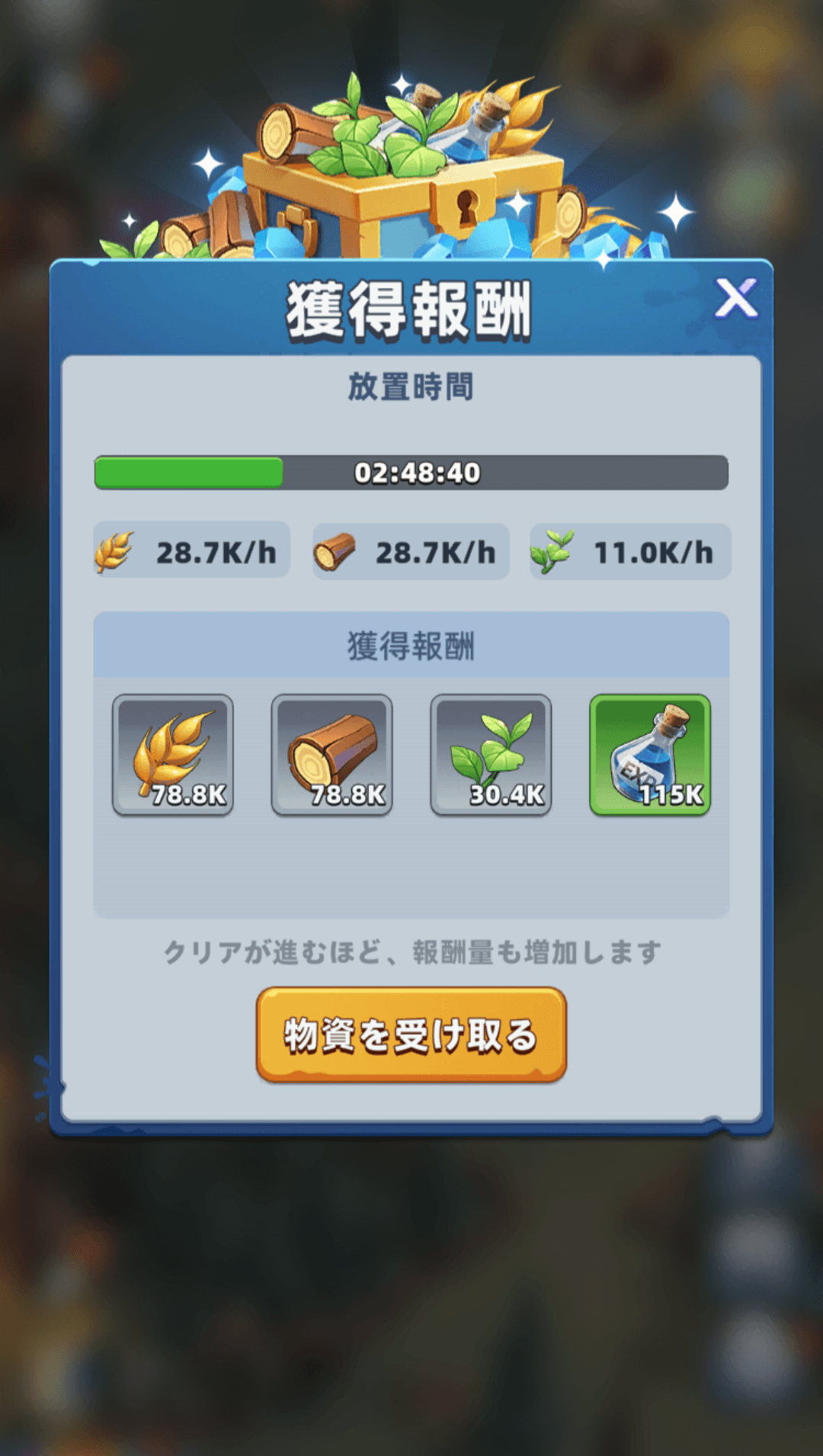 放置報酬で抗毒剤を入手できます。放置報酬の最大時間は10時間です。1日に2回ぐらい受け取るようにしておけばマックスで受け取れます。