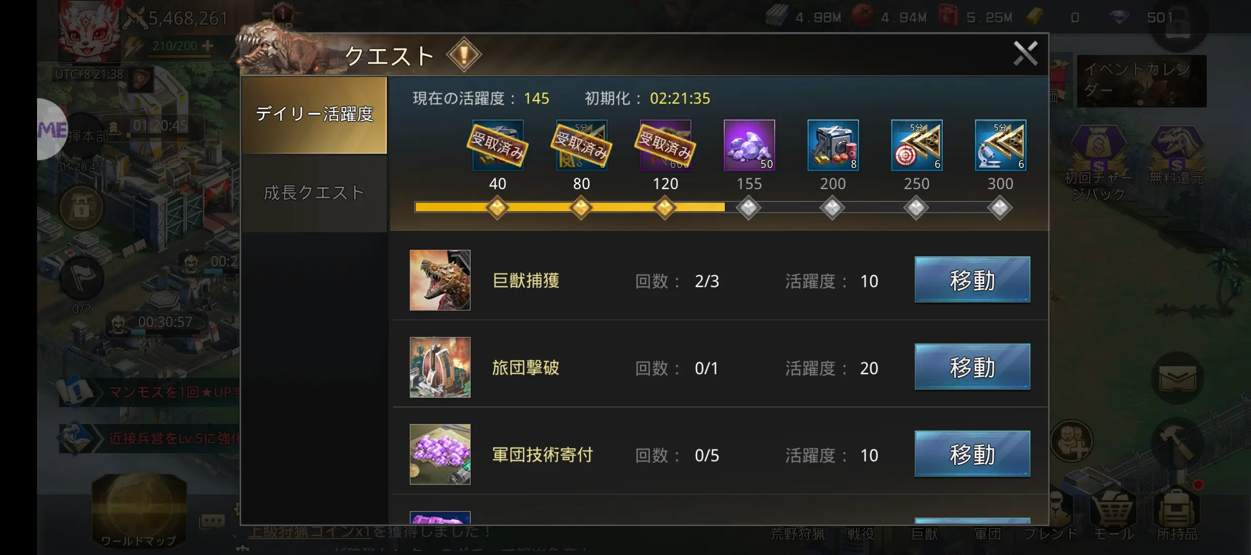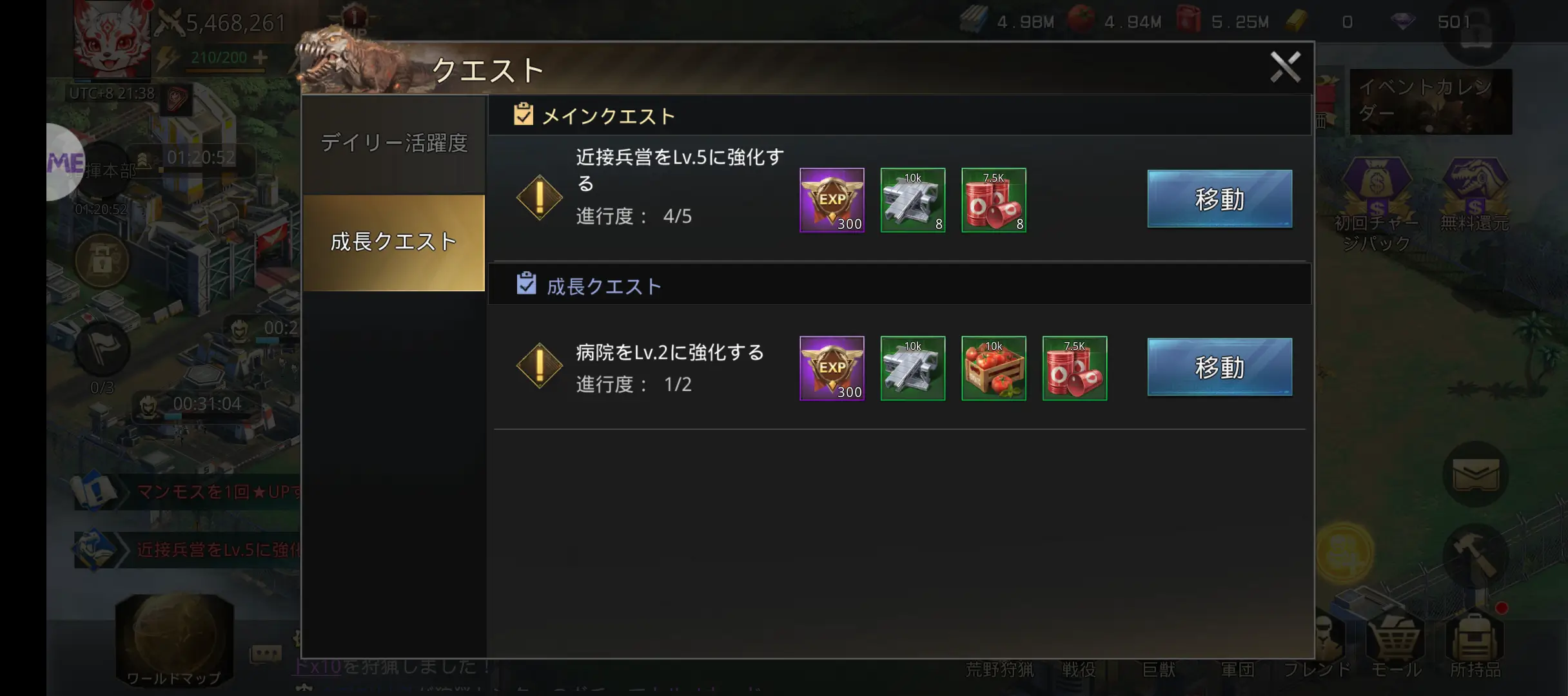 成長クエストで指揮官経験値を入手でき、指揮官のレベルを上げることができます。成長クエストはゲームの進捗をスムーズにしてくれるのでクリアしていきましょう。